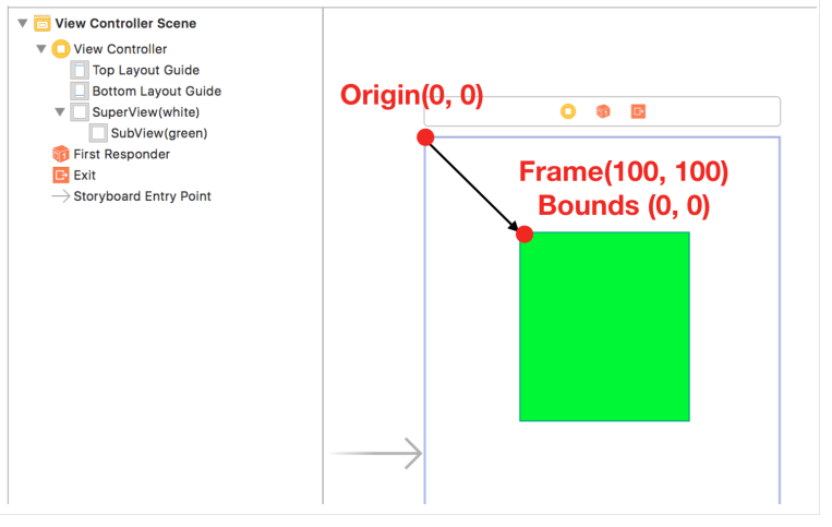 - UIKit에서 기본이 되는 좌표계는 좌측 상단 모서리를 원점으로 함